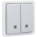 De sokkel van de dubbele drukknop is vervaardigd uit ureumformaldehyde (UF) lichtgrijs RAL 7035.